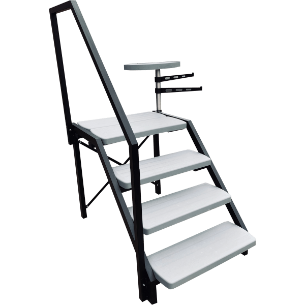 Sunbeach Spas and Oasis Outdoor Living supply a variety of hot tub and swim spa accessories across all their ranges, including swim spa steps. The black aluminium frame provides stable support for the steps, ensuring they are durable and safe. The 4-Step is very easy to assemble. With 3 light steps and a double-size platform, getting into a swim spa has never been easier. A strong handrail extends from the frame for safety when getting in and out of your swim spa, with an added spa table and towel rail, so you're never far from your towel or drinks.
